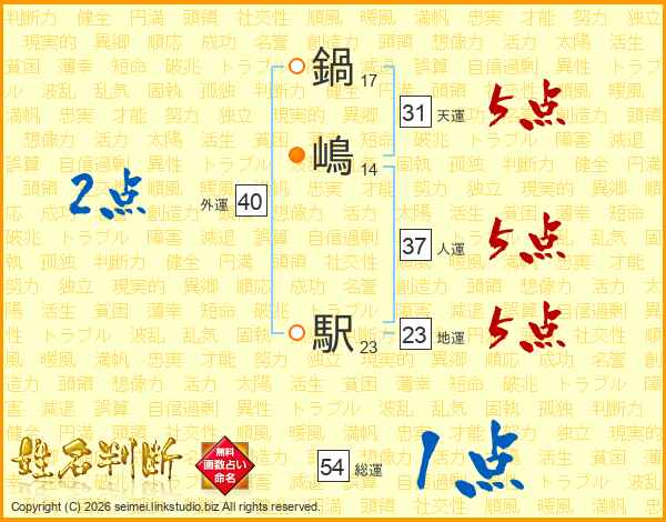 鍋嶋駅さんの人運は37画の5点!
