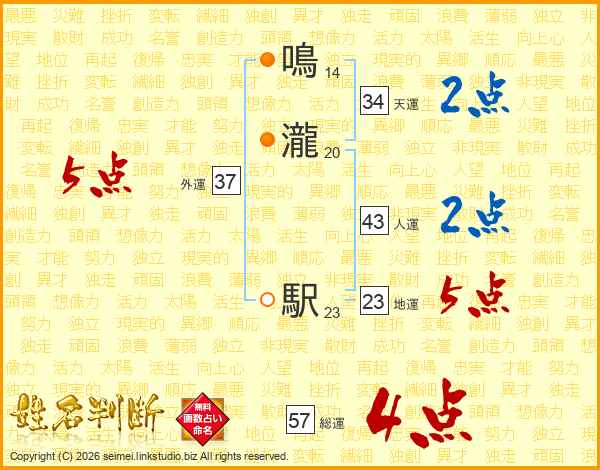 鳴瀧駅さんの人運は43画の2点!