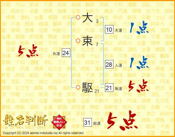 大束駆さんの総運は31画の5点!