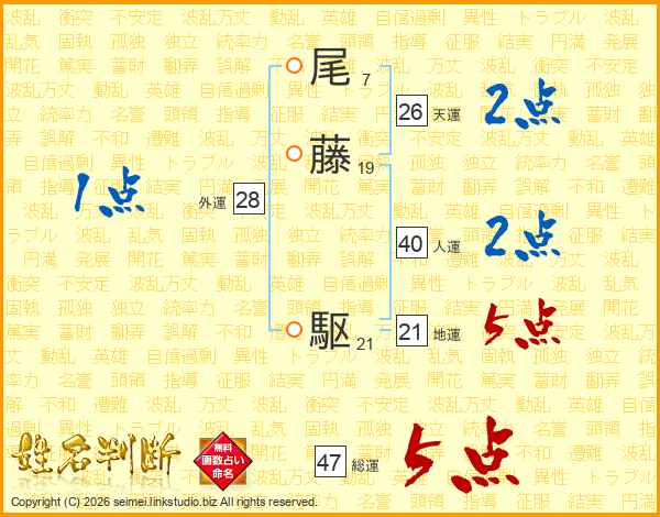 尾藤駆さんの総運は47画の5点!