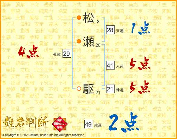 松瀬駆さんの総運は49画の2点!