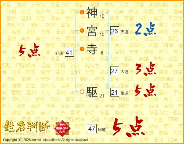 神宮寺駆さんの総運は47画の5点!