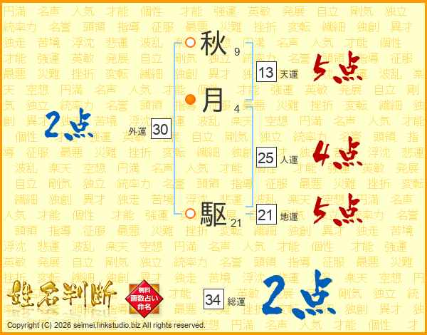 秋月駆さんの総運は34画の2点!