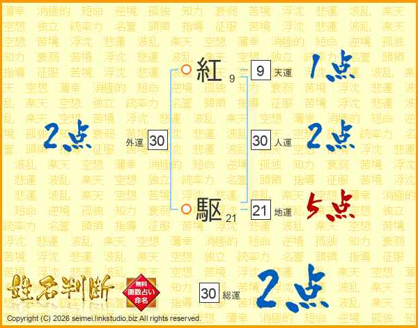 紅駆さんの総運は30画の2点!