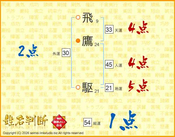 飛鷹駆さんの総運は54画の1点!