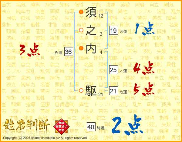 須之内駆さんの地運は21画の5点!