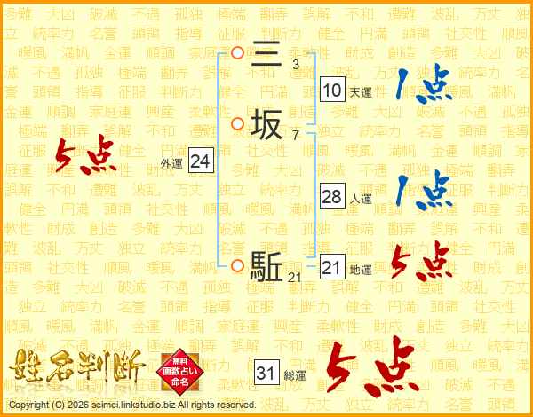 三坂駈さんの総運は31画の5点!