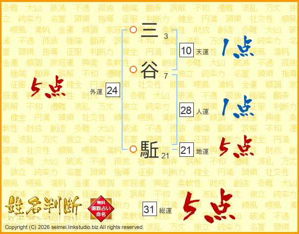 三谷駈さんの総運は31画の5点!