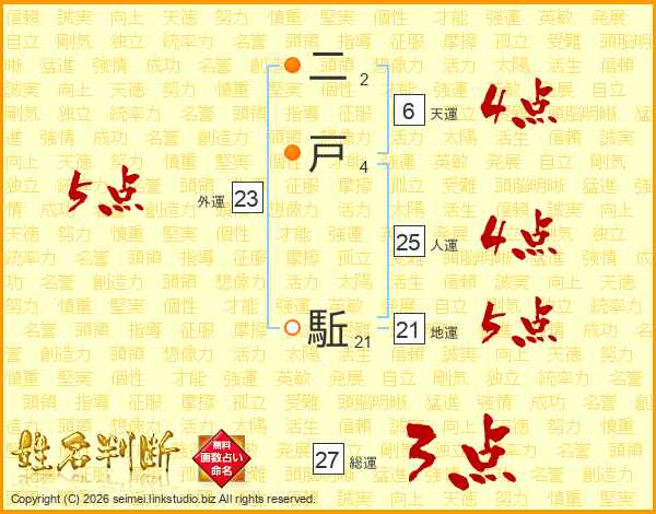 二戸駈さんの総運は27画の3点!
