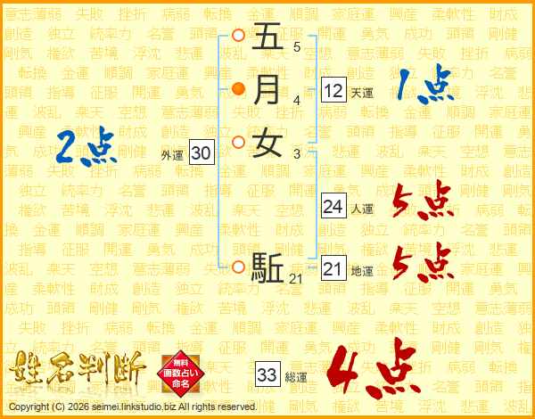 五月女駈さんの総運は33画の4点!