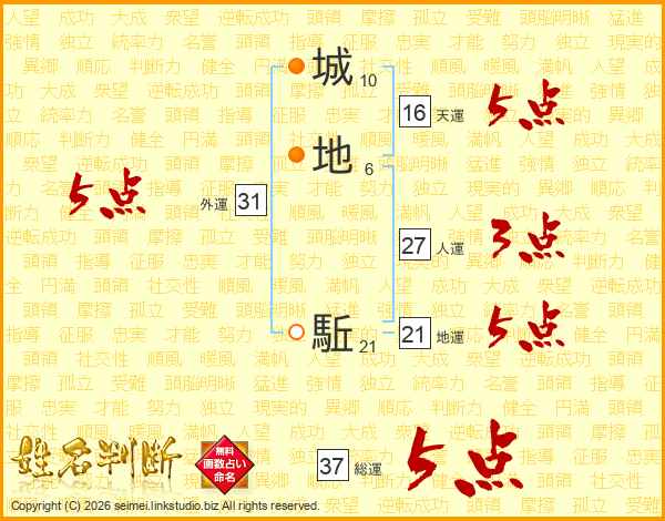 城地駈さんの総運は37画の5点!