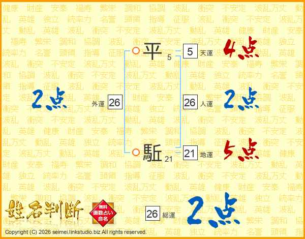 平駈さんの総運は26画の2点!