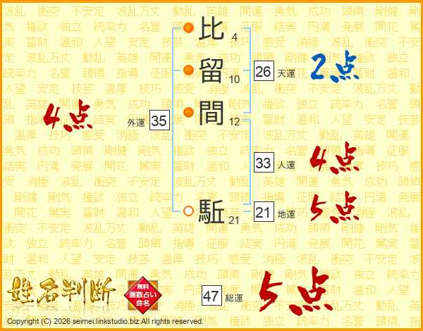 比留間駈さんの総運は47画の5点!
