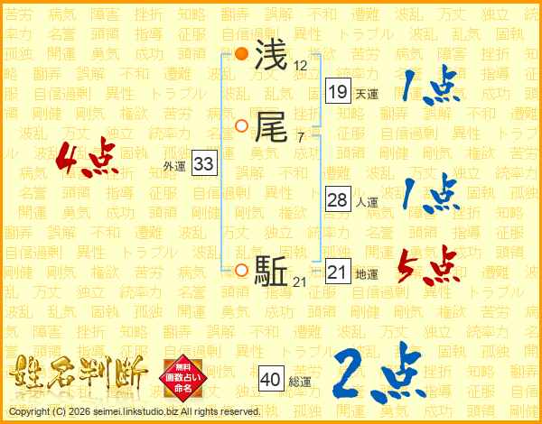 浅尾駈さんの天運は19画の1点!