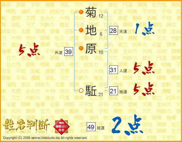 菊地原駈さんの天運は28画の1点!