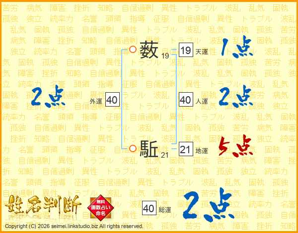 薮駈さんの総運は40画の2点!