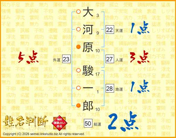 大河原駿一郎さんの人運は27画の3点!