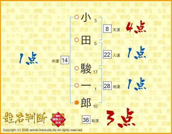 小田駿一郎さんの人運は22画の1点!