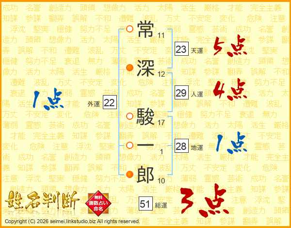 常深駿一郎さんの天運は23画の5点!