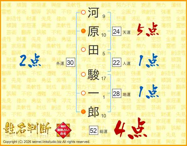 河原田駿一郎さんの総運は52画の4点!