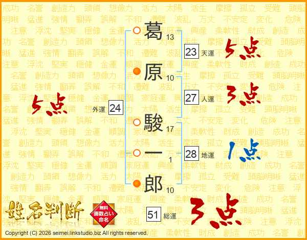 葛(13画)原(10画) 駿(17画)一(1画)郎(10画)