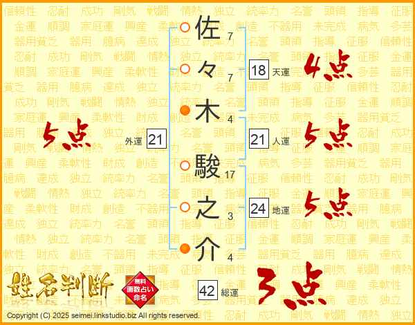佐(7画)々(7画)木(4画) 駿(17画)之(3画)介(4画)