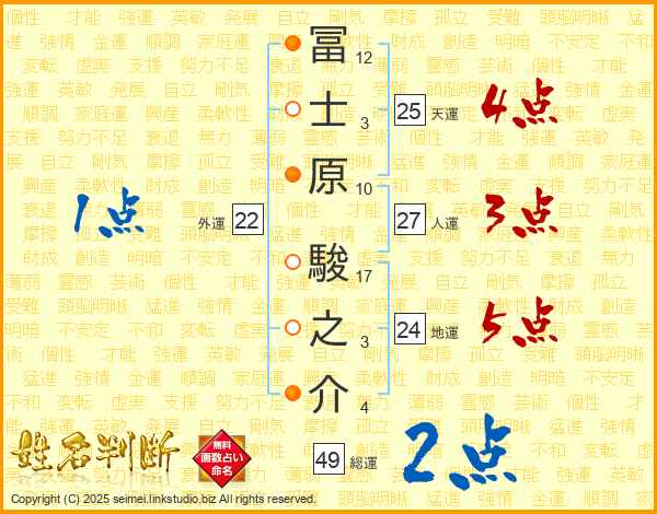 冨(12画)士(3画)原(10画) 駿(17画)之(3画)介(4画)