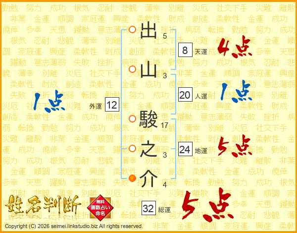 出山駿之介さんの総運は32画の5点!