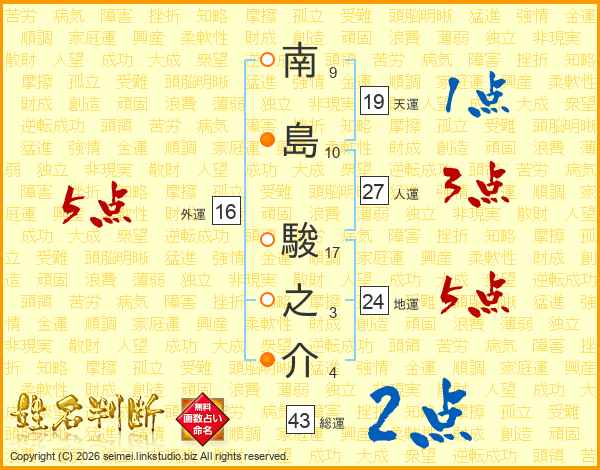 南(9画)島(10画) 駿(17画)之(3画)介(4画)
