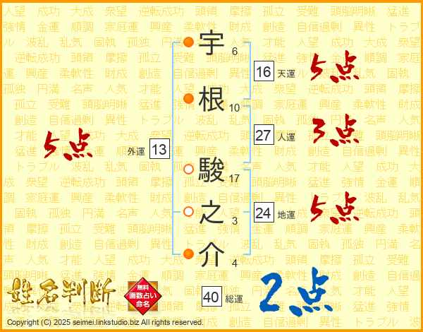 宇根駿之介さんの外運は13画の5点!