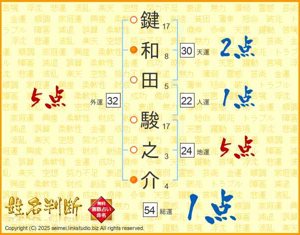 鍵和田駿之介さんの天運は30画の2点!