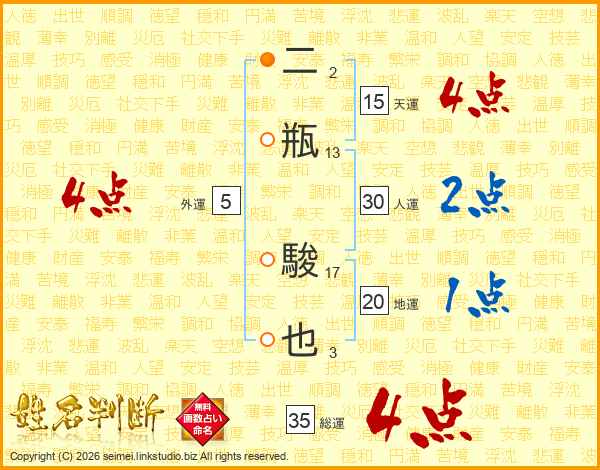 二瓶駿也さんの総運は35画の4点!
