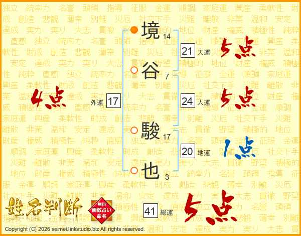 境谷駿也さんの総運は41画の5点!