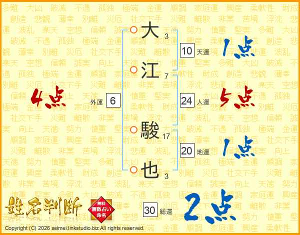 大江駿也さんの総運は30画の2点!