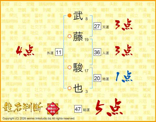 武藤駿也さんの総運は47画の5点!