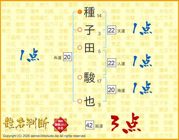 種(14画)子(3画)田(5画) 駿(17画)也(3画)