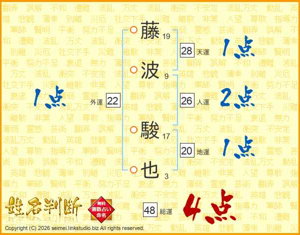 藤波駿也さんの総運は48画の4点!