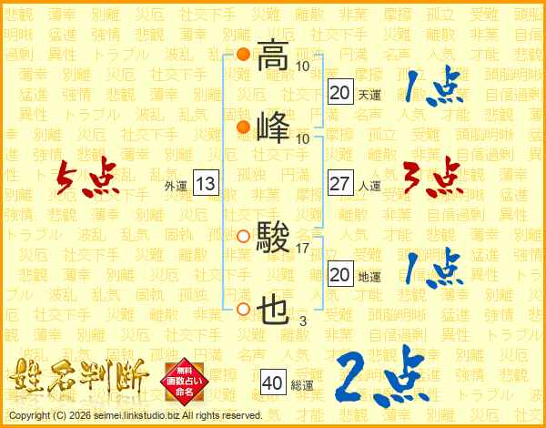 高峰駿也さんの総運は40画の2点!