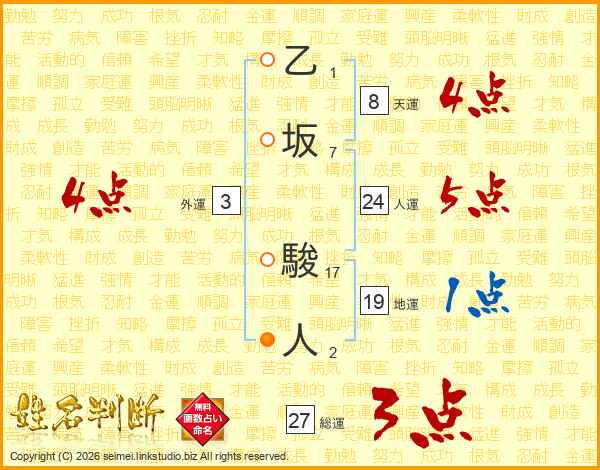 乙坂駿人さんの総運は27画の3点!