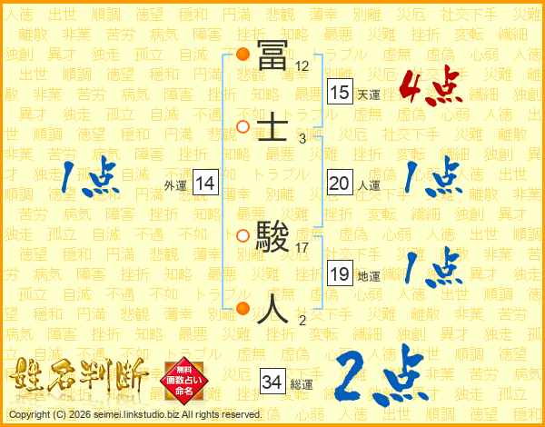 冨士駿人さんの総運は34画の2点!