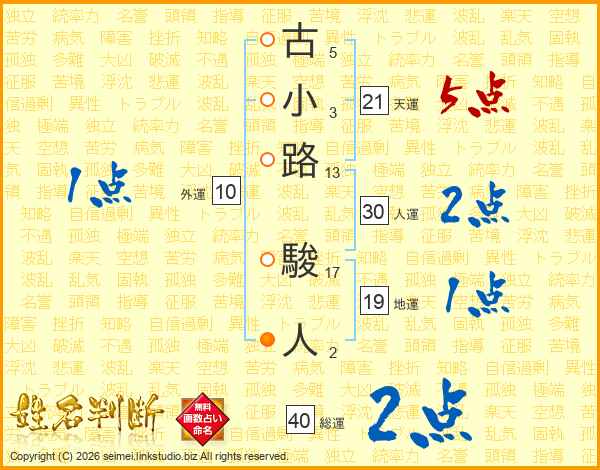 古小路駿人さんの天運は21画の5点!
