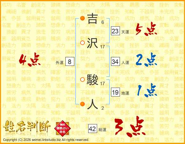 吉(6画)沢(17画) 駿(17画)人(2画)