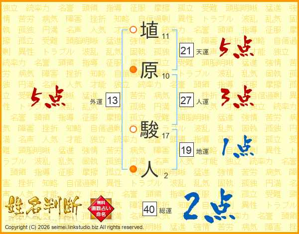 埴原駿人さんの天運は21画の5点!