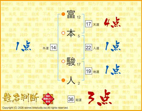 富本駿人さんの総運は36画の3点!