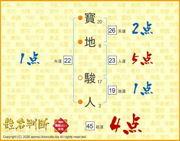 寳地駿人さんの総運は45画の4点!