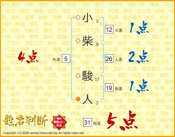 小柴駿人さんの総運は31画の5点!