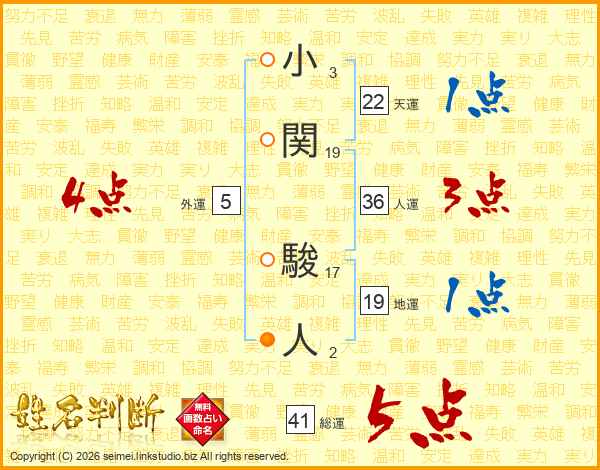 小関駿人さんの総運は41画の5点!