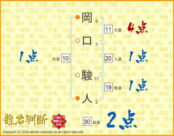 岡口駿人さんの人運は20画の1点!