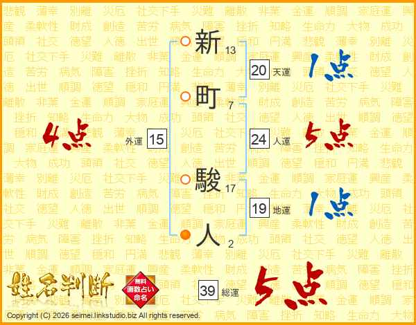 新町駿人さんの総運は39画の5点!