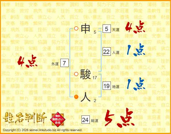 申駿人さんの総運は24画の5点!